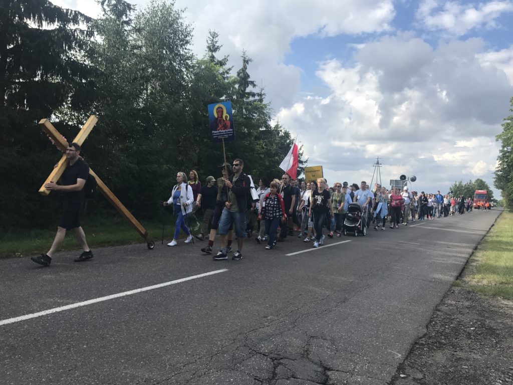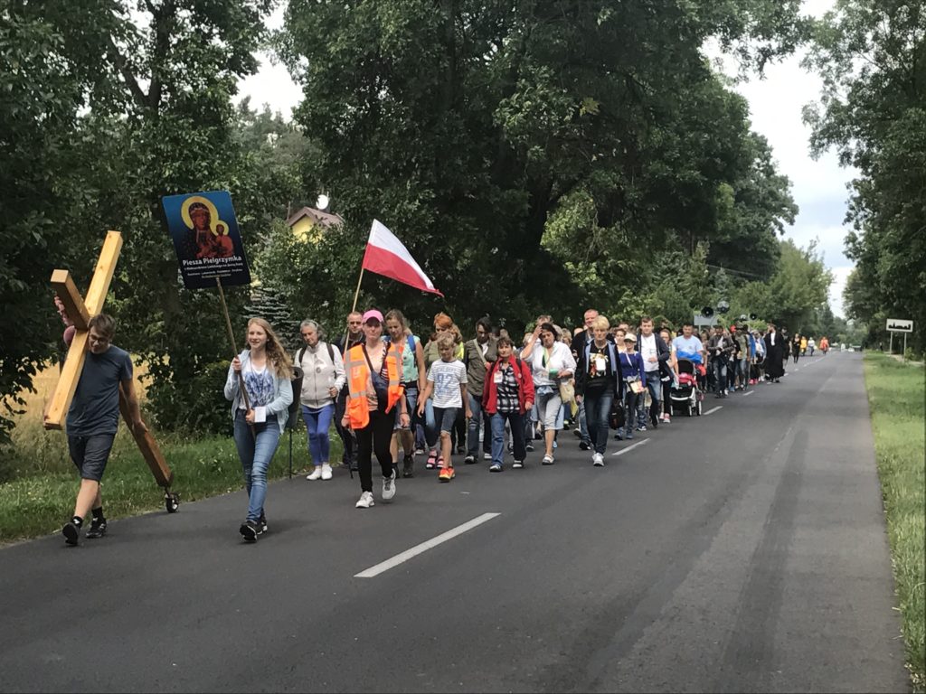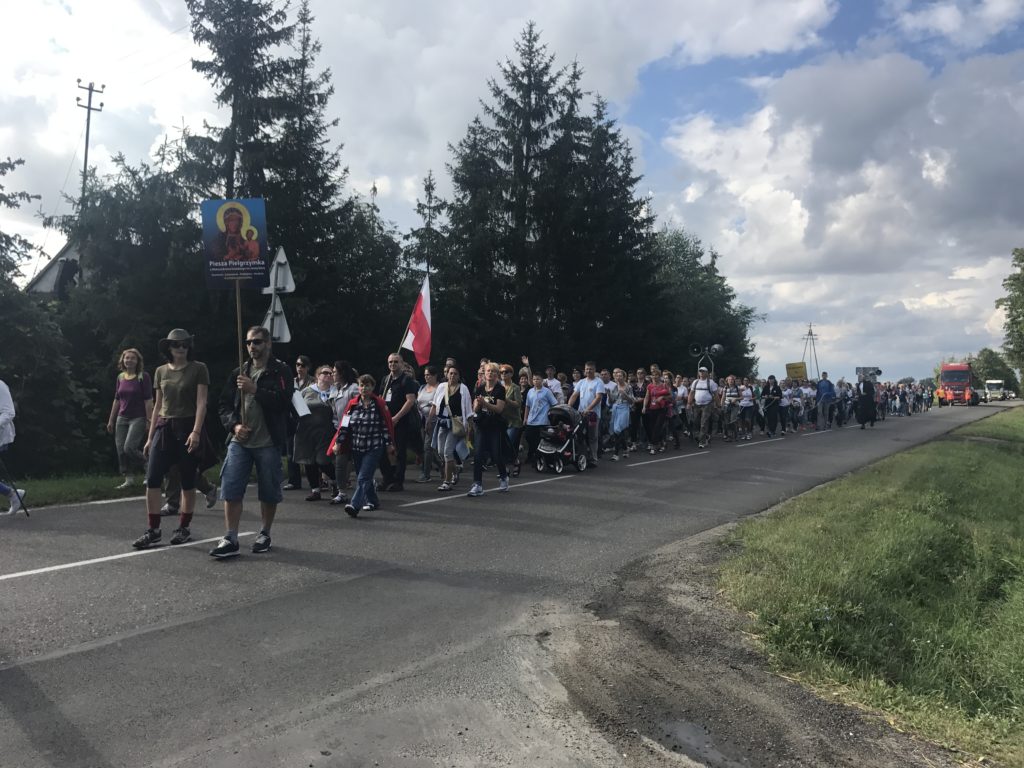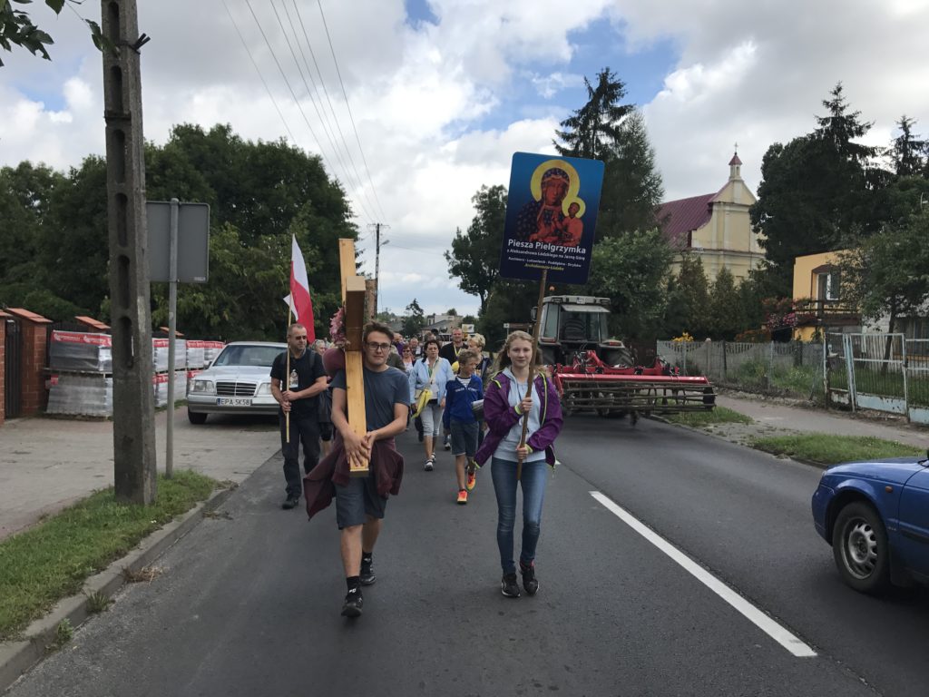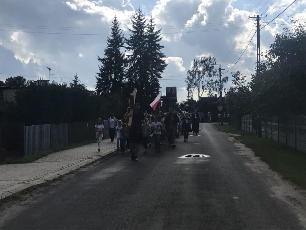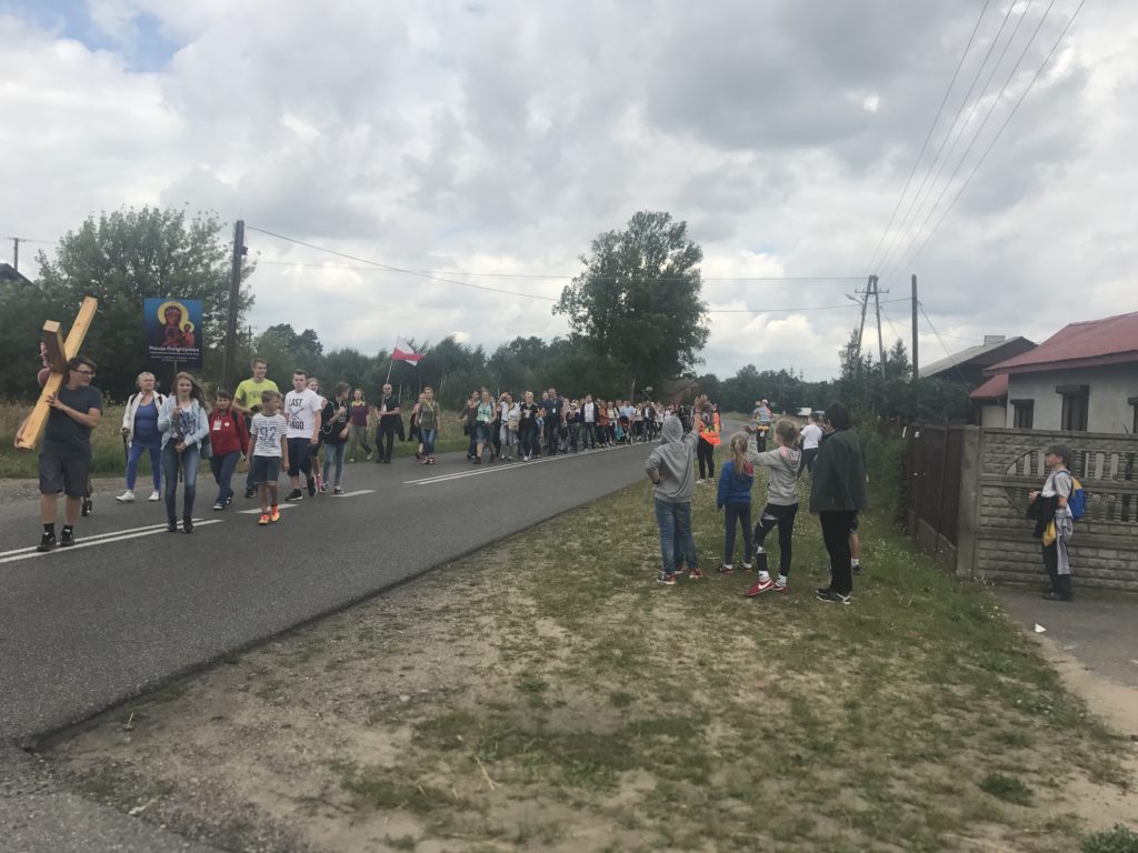 Minął I Dzień Pieszej Pielgrzymki z Aleksandrowa Łódzkiego na Jasną Górę. Dzięki łasce Bożej tylko czasami padał drobny deszczyk, lecz większość drogi mogliśmy pielgrzymować przy pięknej pogodzie. Do Wiewiórczyna doszliśmy około godz. 16.30. Następnie odbył się o godz. 19.30 na Wieczór Pokutny, który poprowadził ks. Maksymilian Pyzik, na którym każdy miał okazję przyjąć Sakrament Pokuty oraz adorować Najświętszy Sakrament. Jutro kierując się na Jasną Górę zmierzamy do Szczercowa.