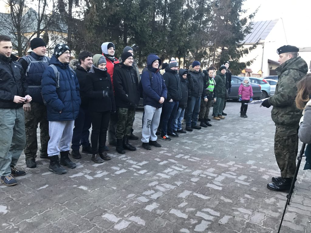 Po dotarciu do Lutomierskiej parafii Matki Boskiej Szkaplerznej, gdzie było przygotowane ognisko oraz poczęstunek, został uroczyście odczytany Apel Poległych, a wszyscy uczestnicy odśpiewali Hymn Polski. Następnie przy kiełbaskach, przepysznym bigosie oraz kanapkach zostały podliczone punkty uzyskane przez drużyny w poszczególnych konkurencjach. Nagrody dla wszystkich uczestników były niesamowite. Przede wszystkim satysfakcja z przejścia kilkunastu kilometrów, radość z dobrej zabawy oraz wspaniały poczęstunek na finiszu. Wszyscy uczestnicy otrzymali pamiątkowe naklejki na auto, dodatkowe gadżety w postaci wlepek, najmłodsi uczestnicy opaski odblaskowe. Zwycięska drużyna została natomiast nagrodzona nagrodami książkowymi oraz kalendarzami prosto z Ministerstwa Obrony Narodowej. Zmęczeni, ale zadowoleni uczestnicy marszu wrócili do Aleksandrowa zamówionym autobusem – organizatorzy nie mieli serca, aby wracali na piechotę:)