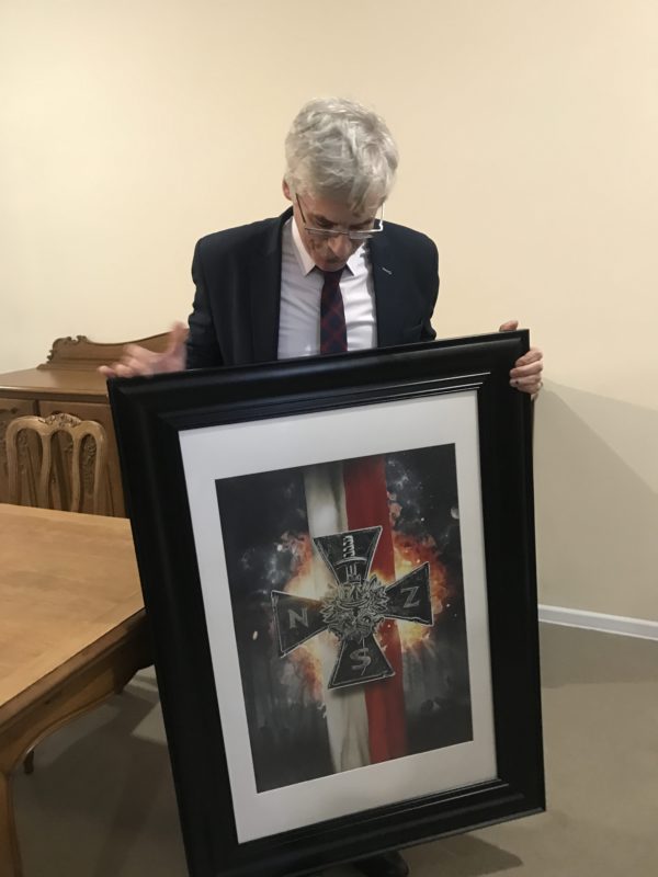 Chętni, tuż po mszy, mogli wziąć udział w spotkaniu z panem Zbigniewem Natkańskim, dyrektorem biura wojewody łódzkiego, historykiem oraz dziennikarzem, który podzielił się z zebranymi swą wiedzą na temat „Znaczenie i miejsce organizacji Wolność i Niezawisłość w powojennej konspiracji antykomunistycznej”.