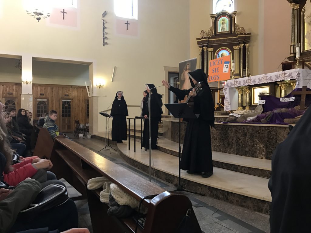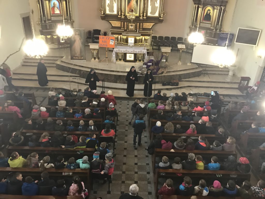 W dniach 13 – 15 marca odbywały się w naszej parafii rekolekcje wielkopostne, dla dzieci i młodzieży, które poprowadziły siostry ze Zgromadzenia Matki Bożej Miłosierdzia wraz z dziewczętami. W pierwszy dzień rekolekcji odbyły się spotkania z nauką ogólną, następnego dnia dzieci i młodzież skorzystały z sakramentu pokuty i pojednania, natomiast w środę wszyscy uczestniczyli we Mszy Świętej. Dziękujemy siostrom oraz dziewczętom prowadzącym rekolekcje i mamy nadzieje, że dzięki nim młodzi chrześcijanie godnie przygotują się do Świąt Wielkanocnych.