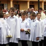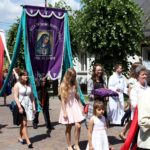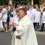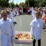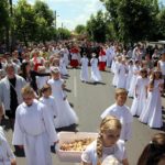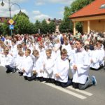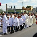 W tym roku Uroczystość Bożego Ciała przypadło 15 czerwca. Główną Eucharystię o godz. 10.30 sprawował i homilię wygłosił Ksiądz Prałat Zbigniew Tracz, Kanclerz Kurii Metropolitalnej Łódzkiej. Po Mszy Świętej wyruszyła procesja do czterech ołtarzy przygotowanych przez grupy parafialne.