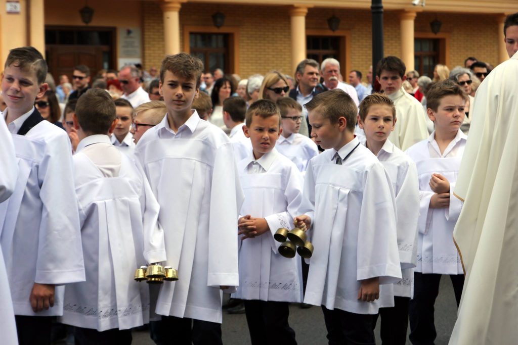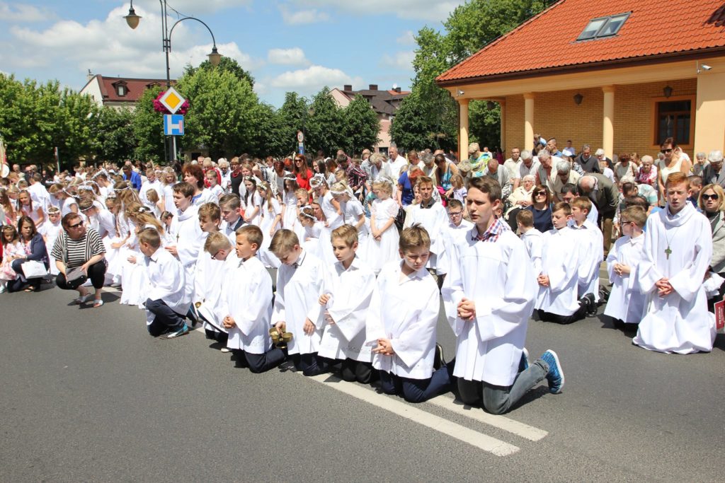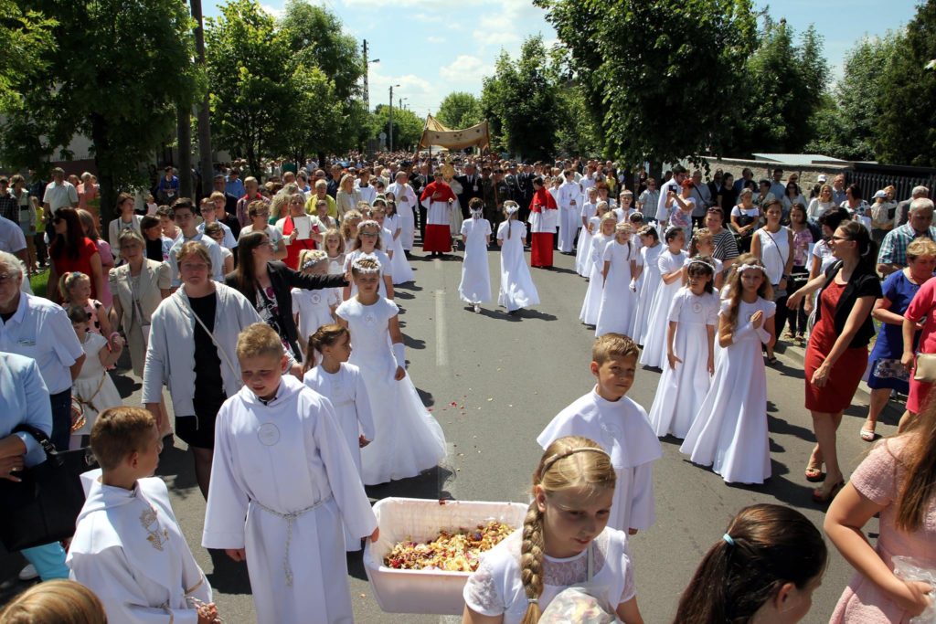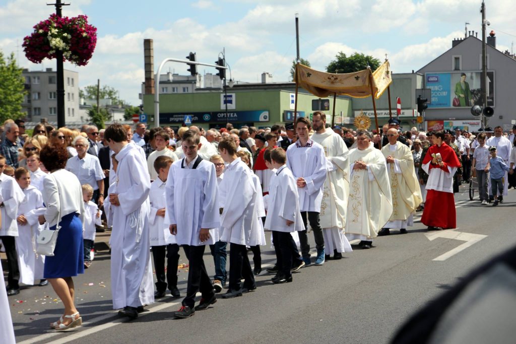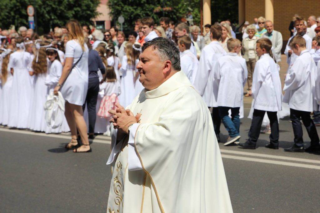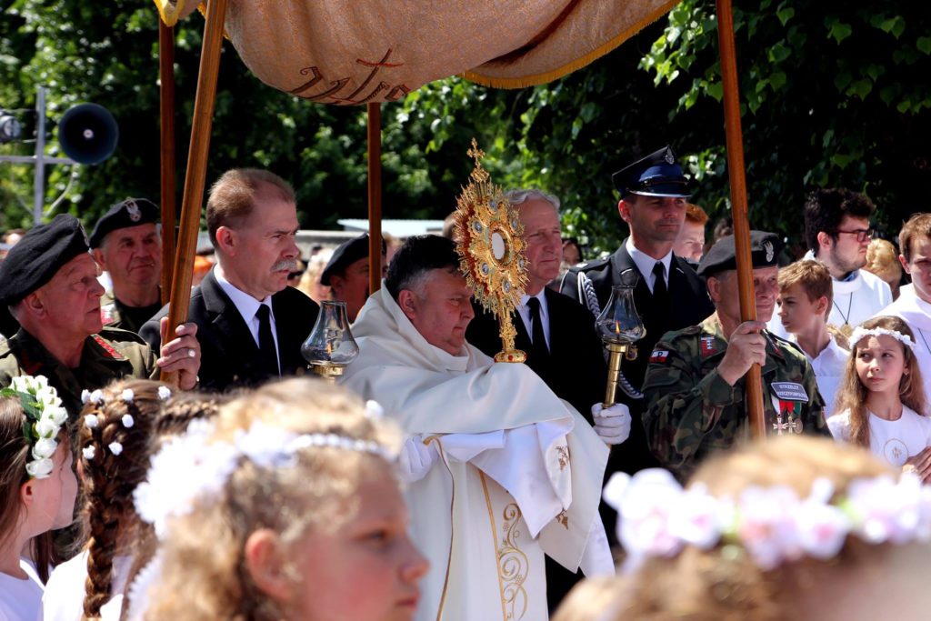 W tym roku Uroczystość Bożego Ciała przypadło 15 czerwca. Główną Eucharystię o godz. 10.30 sprawował i homilię wygłosił Ksiądz Prałat Zbigniew Tracz, Kanclerz Kurii Metropolitalnej Łódzkiej. Po Mszy Świętej wyruszyła procesja do czterech ołtarzy przygotowanych przez grupy parafialne.