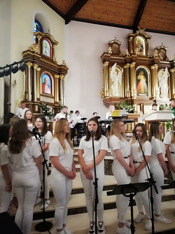 A dziś po mszy dziękczynnej odbył się koncert uwielbieniowy w ramach projektu na 100 -lecie urodzin Papieża, wystąpił zespół muzyczno-wokalny – młodzież z Chorzęcina, Wolborza i Tomaszowa Mazowieckiego pod kierownictwem p. Tomasza Kosiora z programem pt. „Młodzieńcze mówię wstań”.