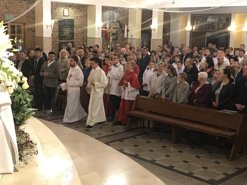 W piątek 8 września podczas Mszy Świętej o godz. 18.00 nasi parafianie zgromadzili się, aby zawierzyć się Sercu Maryi. Uroczystej Eucharystii przewodniczył ks. Gabriel Kołodziej. Po Mszy Świętej przed Najświętszym Sakramentem dokonaliśmy Uroczystego Aktu Zawierzenia Niepokalanemu Sercu Maryi. Nasza wspólnota parafialna może czuć się bezpiecznie, bo Maryja nad nią czuwa i się nią opiekuje.