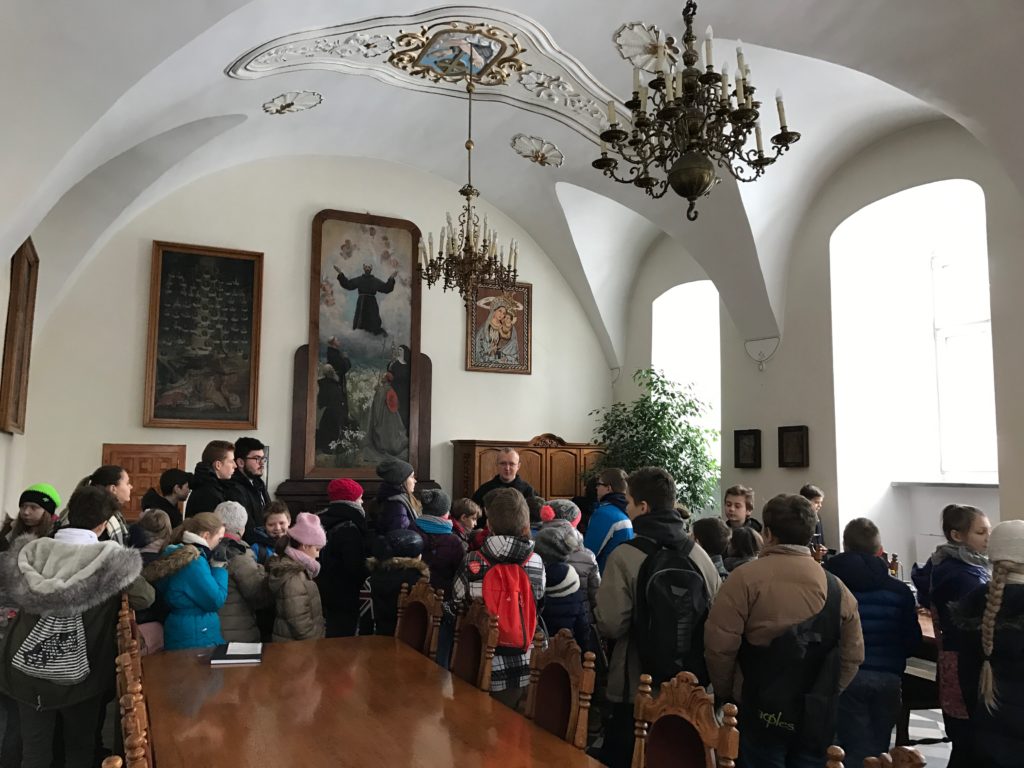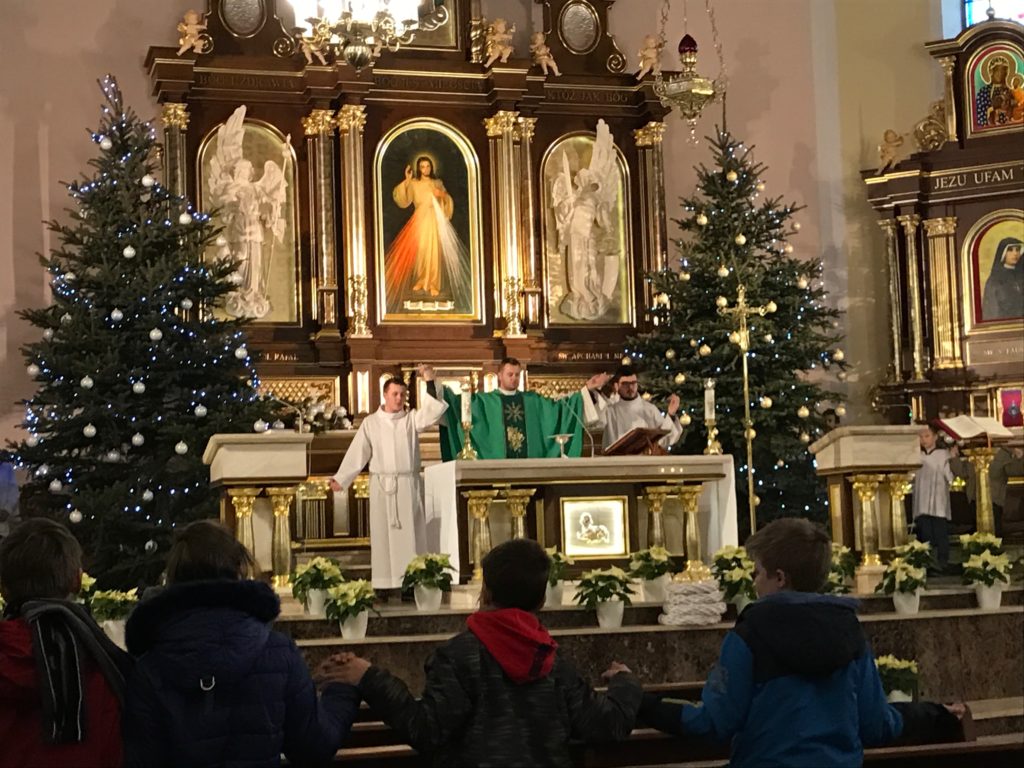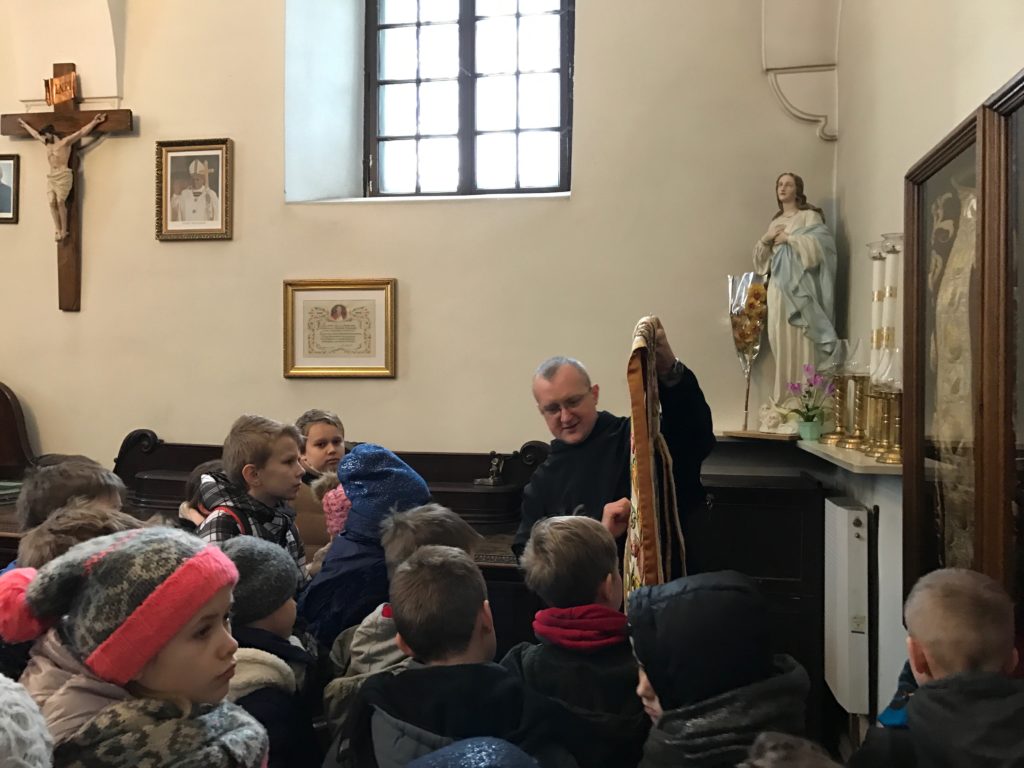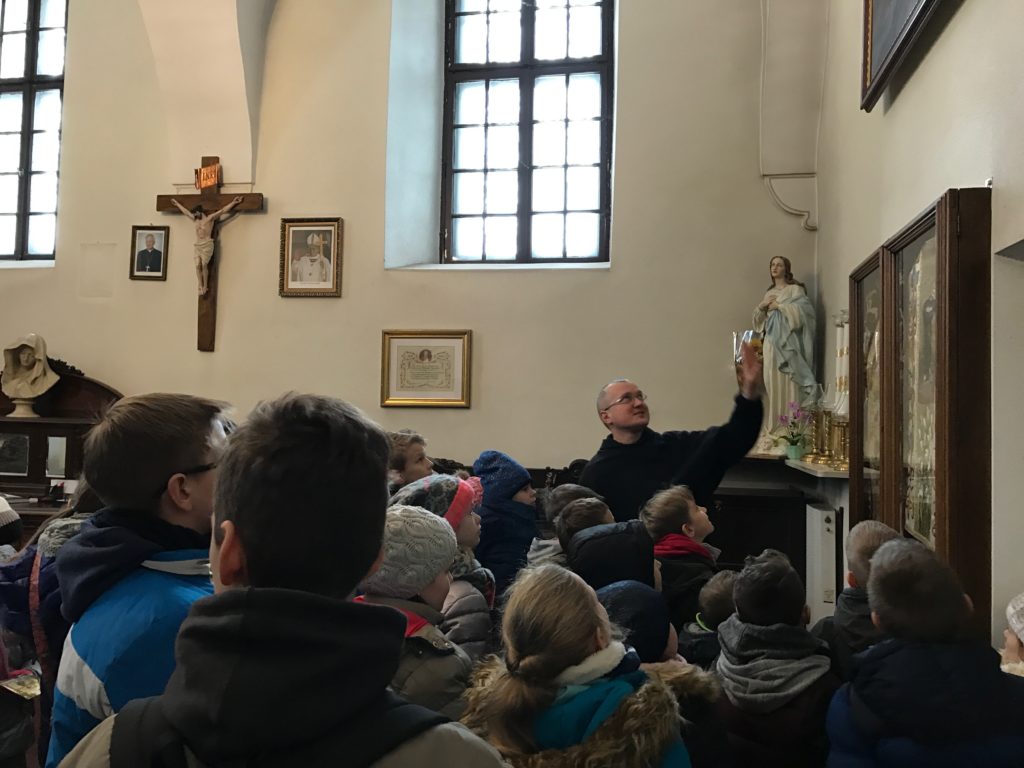 Od poniedziałku do piątku (16-20 stycznia) w naszej parafii odbywały się ferie. Brała w nich duża grupa dzieci i młodzieży. Każdego dnia wszyscy uczestniczyli we Mszy świętej, wspólnej modlitwie w Godzinie Miłosierdzia, we wspólnych posiłkach, w zajęciach w grupach – w rozmaitych grach i zabawach, zajęciach plastycznych i sportowych, a nawet we wspólnym pieczeniu ciasteczek. Szczególną atrakcją okazał się wyjazd do planetarium i kręgielni oraz wyjście na lodowisko. Podążając szlakiem Świętych Diecezji Łódzkiej mali pielgrzymi nawiedzili łódzką bazylikę archikatedralną pw. św. Stanisława Kostki. W tej świątyni w 1924 roku św. Faustyna Kowalska otrzymała od Pana Jezusa ostateczne potwierdzenie swego powołania do życia zakonnego. Stąd wyruszyła do Warszawy i wstąpiła do Zgromadzenia Sióstr Matki Bożej Miłosierdzia. Drugim miejscem pielgrzymowania dzieci i młodzieży było Sanktuarium św. Antoniego z Padwy w łodzkich Łagiewnikach, którym opiekują się ojcowie franciszkanie konwentualni. W tym starym klasztorze w latach 1728-36 i 1738-41 mieszkał i ofiarnie posługiwał błogosławiony ojciec Rafał Chyliński. Trwał on na modlitwie i umartwieniu, zasłynął jako niezwykły spowiednik i człowiek miłosierdzia.